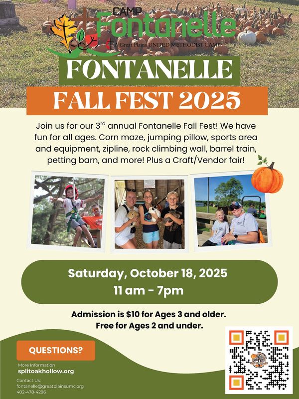 We are excited to have our Third Annual Vendor Fair, during Camp Fontanelle's Fall Fest. We have moved all of the vendors inside so we don't have to worry about the elements.